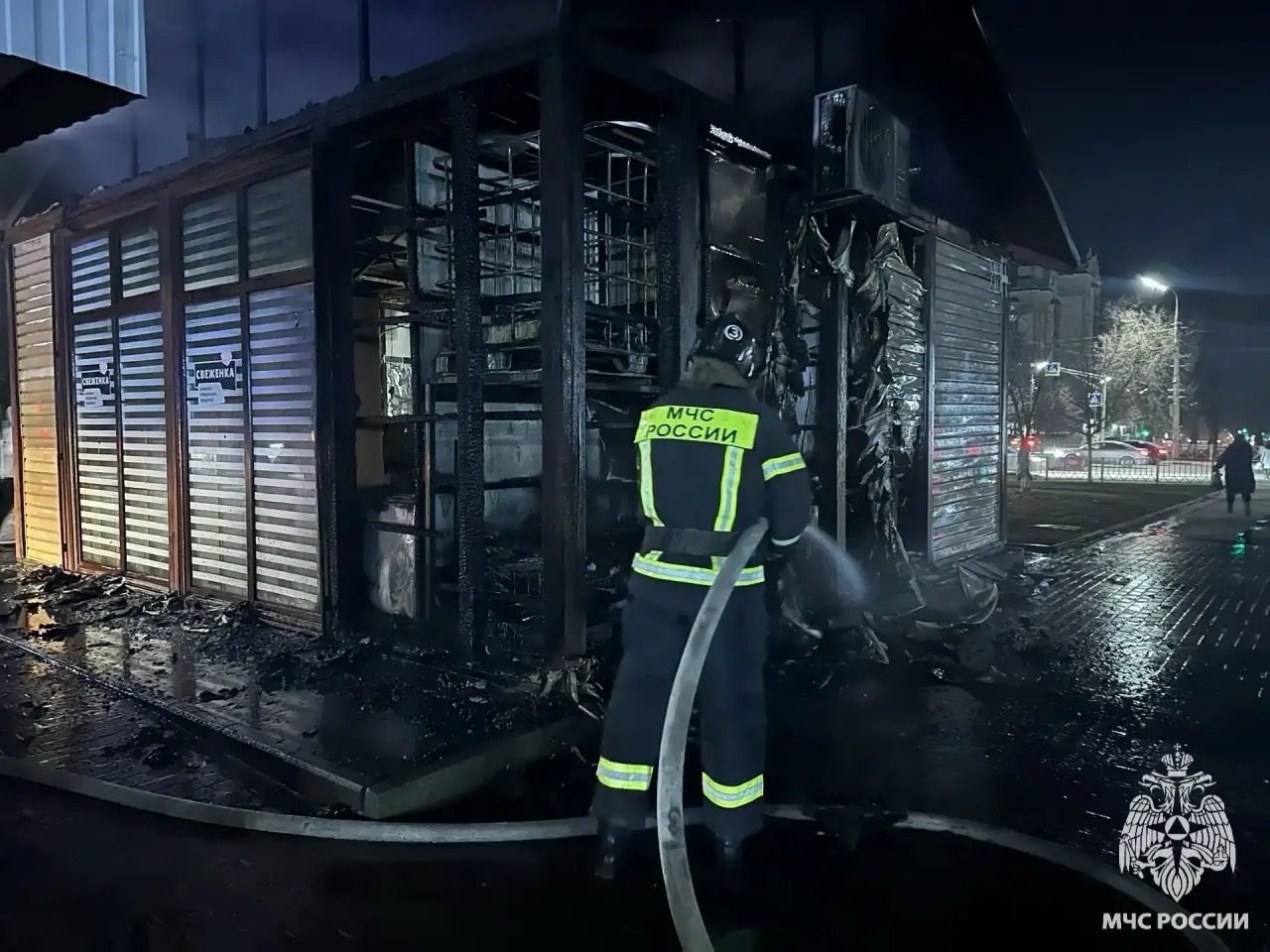 В 20:20 26 марта в Орле на остановке Магазин «Орёл» произошёл пожар. Загорелся торговый павильон, где располагается магазин продуктов.
