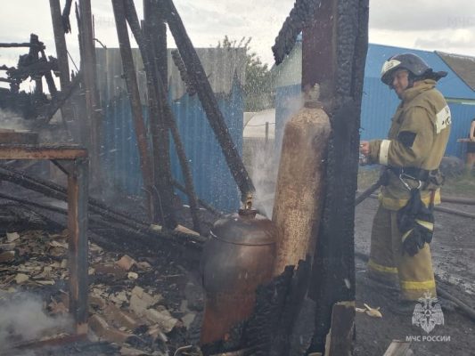 В Орловской области пожар в гараже чуть не привёл к взрыву трёх баллонов с газом