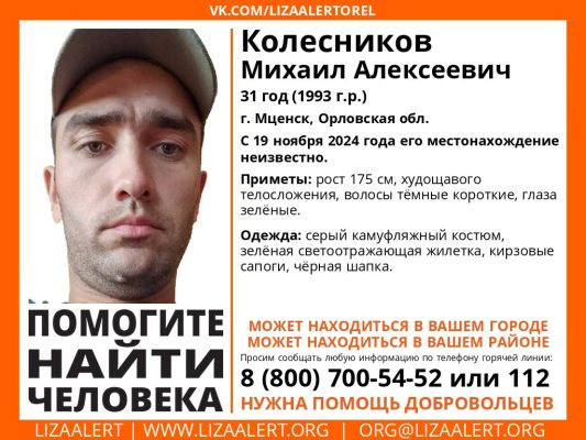 В Орловской области идут поиски 31-летнего Михаила Колесникова. Он не выходит на связь уже пятый день.