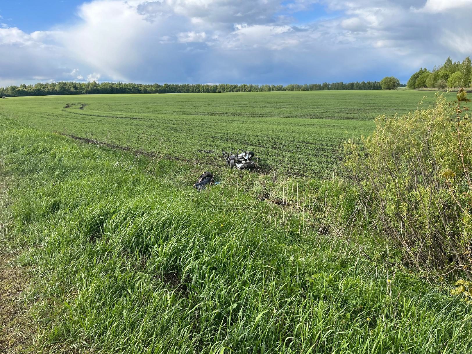 Накануне, 13 мая, в Корсаковском районе Орловской области произошло ДТП с участием мотоциклиста, который выехал на автомобильную дорогу без права управления и врезался в дорожный знак.