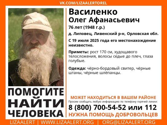 В Орловской области идут поиски 76-летнего Олега Василенко. Он не выходит на связь уже вторую неделю.