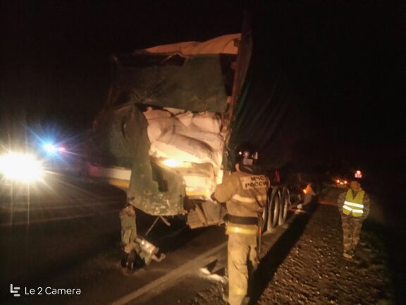 Ночью на трассе М-2 в Кромском районе Орловской области произошло столкновение рейсового пассажирского автобуса с грузовиком КамАЗ.