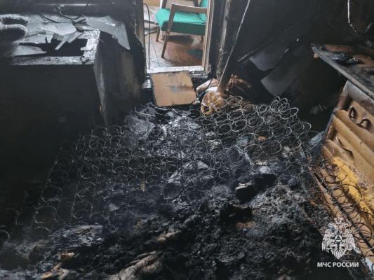 Очевидцы почувствовали запах дыма и вызвали МЧС. Огонь беспощадно уничтожил все, что было в комнате – матрацы, шкафы, предметы интерьера. Пламя рвалось наружу. Опалило и балконную дверь.
