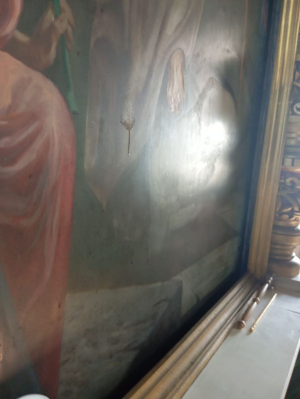 Но икона Христа Спасителя продолжала мироточить вновь и вновь. Всего за год было четыре эпизода. Последний произошёл в ноябре 2025 года. Миро выделялось из разных частей божественного полотна.