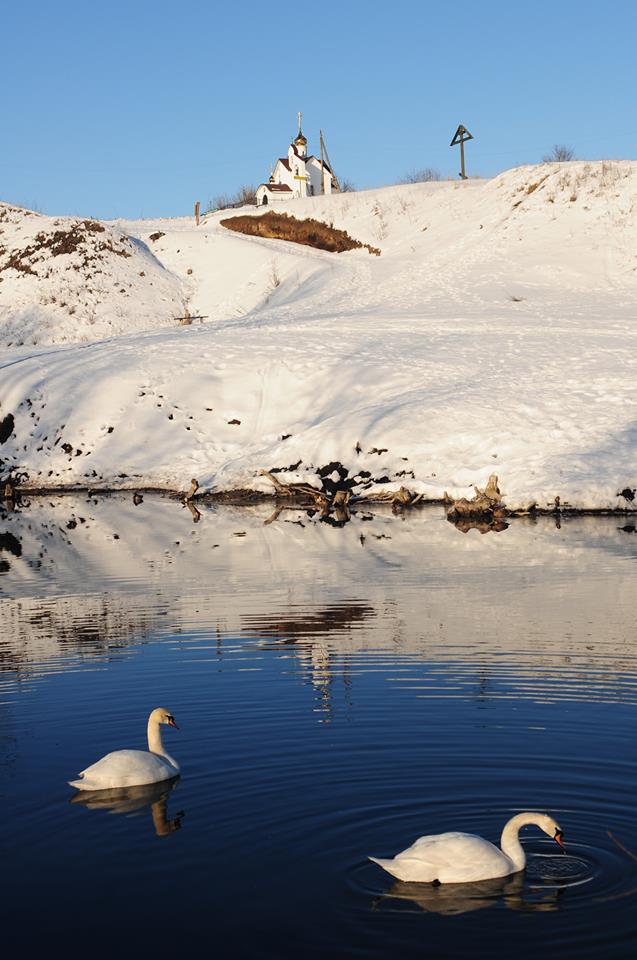 В селе Кирово Сосковского района на святом источнике около храма преподобного Сергия Радонежского уже долгое время живёт стая лебедей.