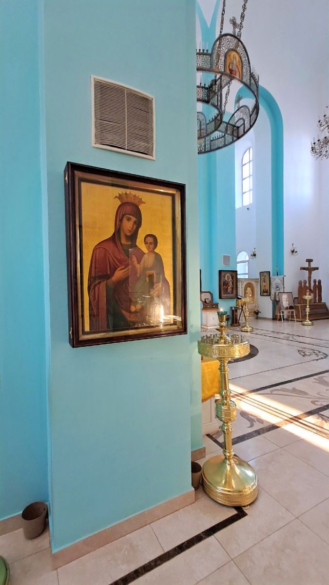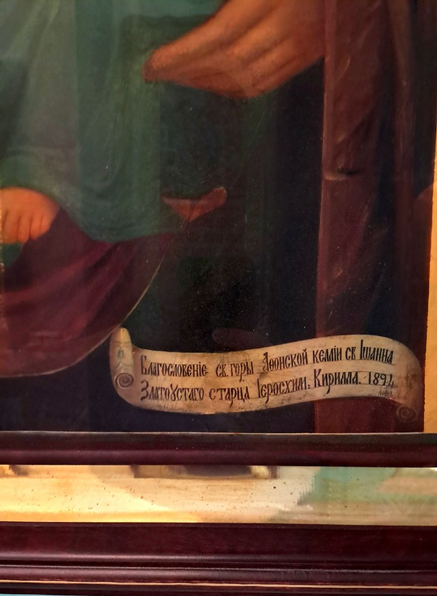 Эта икона, написанная в 1894 году, была передана церкви по благословению игумена Русского Пантелеимонова монастыря на Святой Горе Афон, архимандрита Евлогия (Иванова).