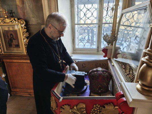 В орловский храм вернулось украшенное золотым шитьём облачение святителя Тихона Задонского