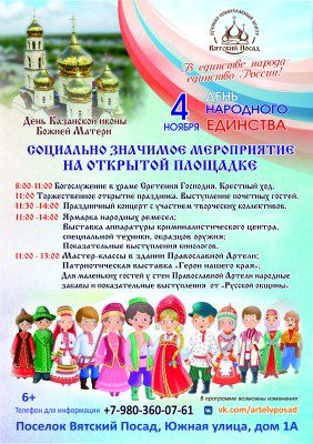 Духовно-православный центр “Вятский посад” пригласил орловцев принять участие в праздничных мероприятиях по случаю Дня народного единства. Также 4 ноября вся православная Россия будет отмечать праздник Казанской иконы Божией Матери.