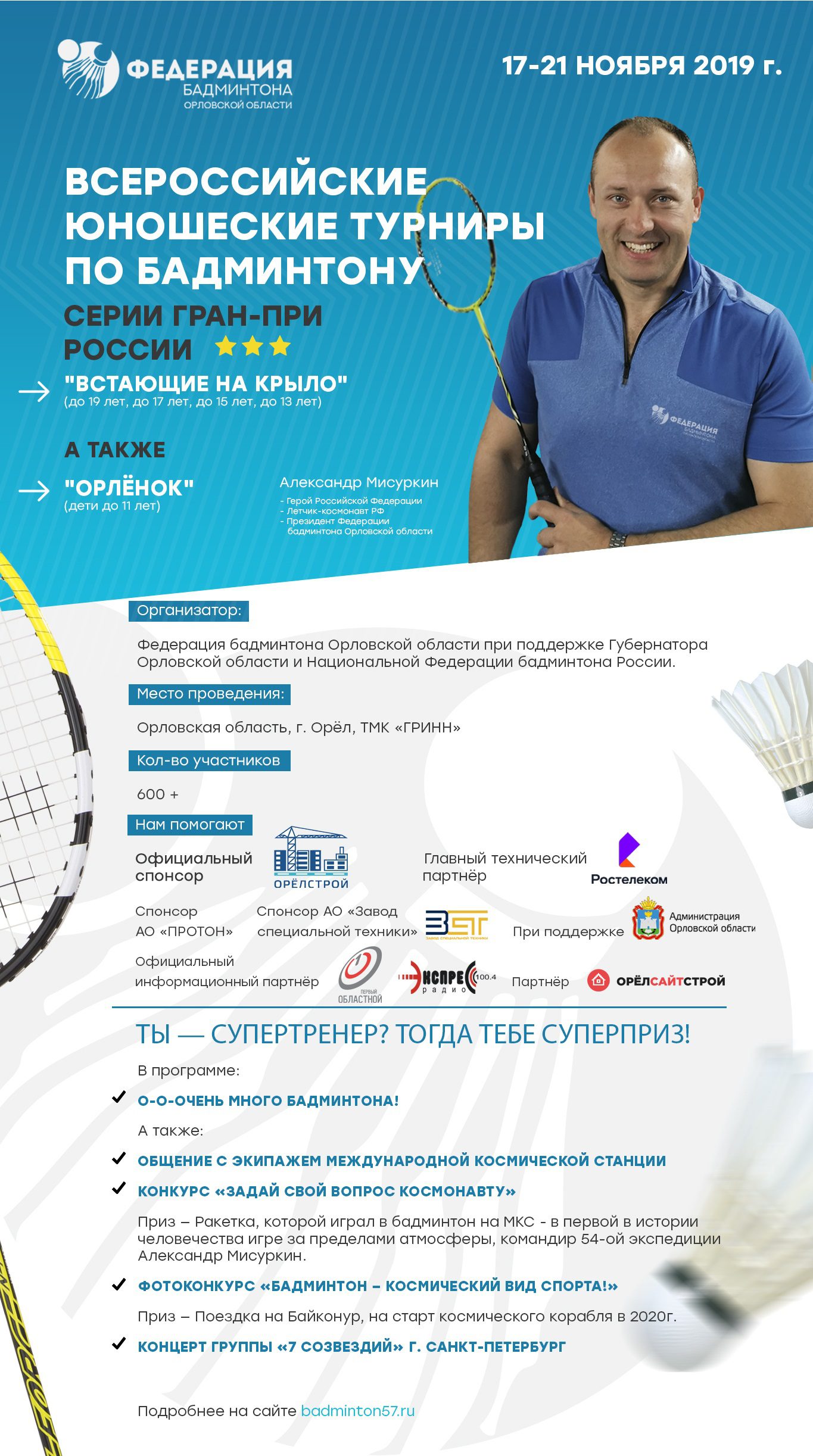 Организатор – «Федерация бадминтона Орловской области».