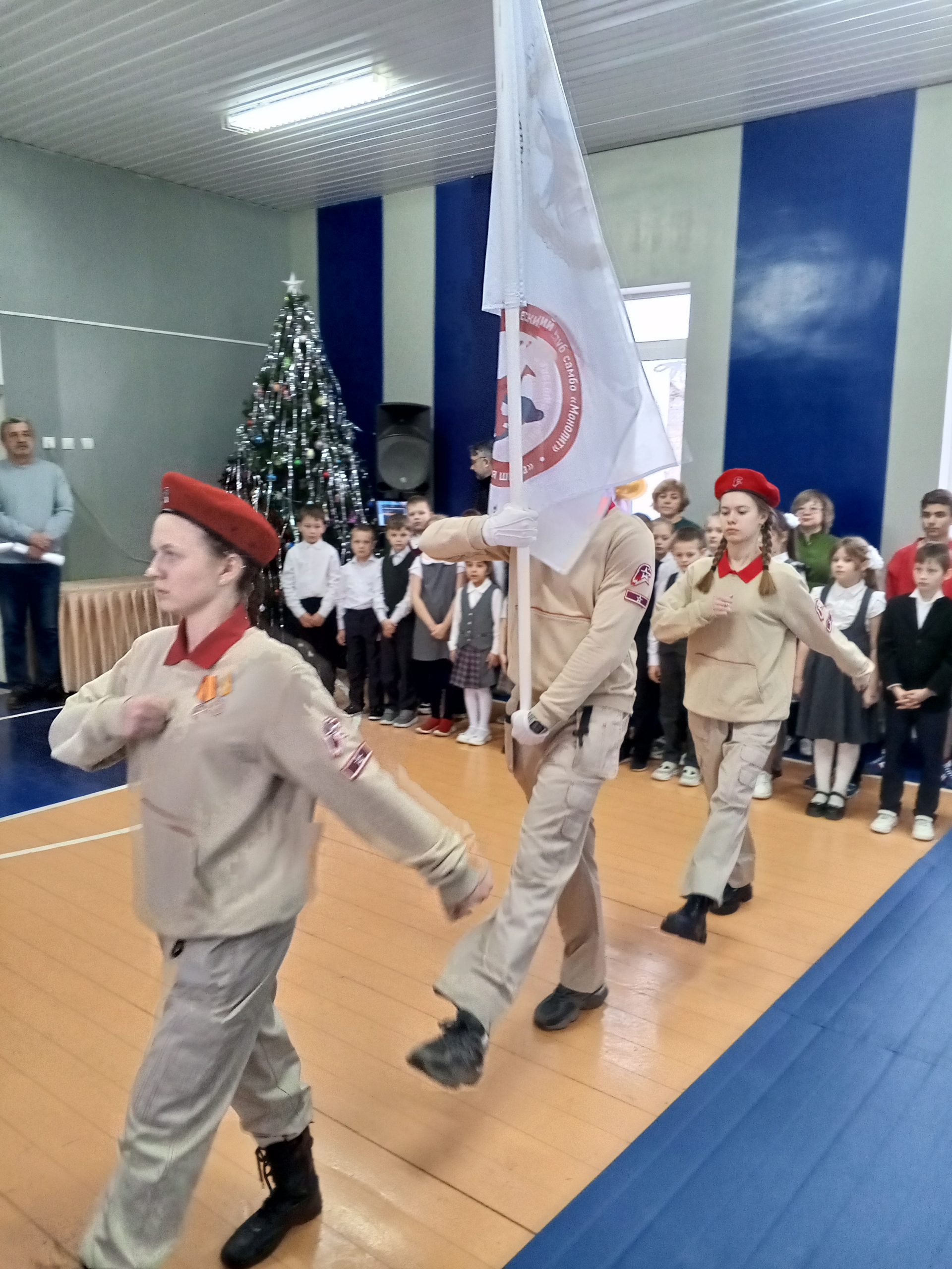 Среди почётных гостей – президент Федерации самбо Орловской области Анатолий Якунин. Он поздравил всех присутствующих с наступающими праздниками, а также передал флаг клуба тренеру секции.