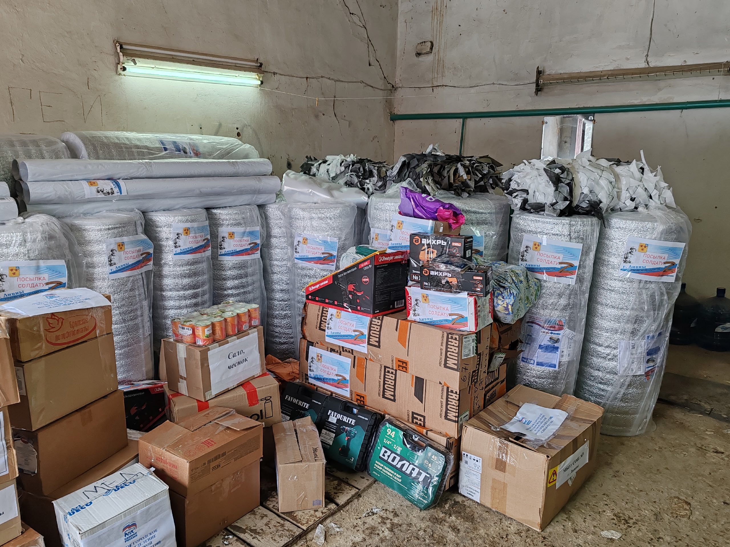 Груз весом более 3 тонн для мотострелков передали партийцы Колпнянского района. В него вошли строительные материалы, инструменты, брезент, газовые плиты и баллоны, электрика и расходные материалы для генераторов, маскировочные сети и тёплые вещи.