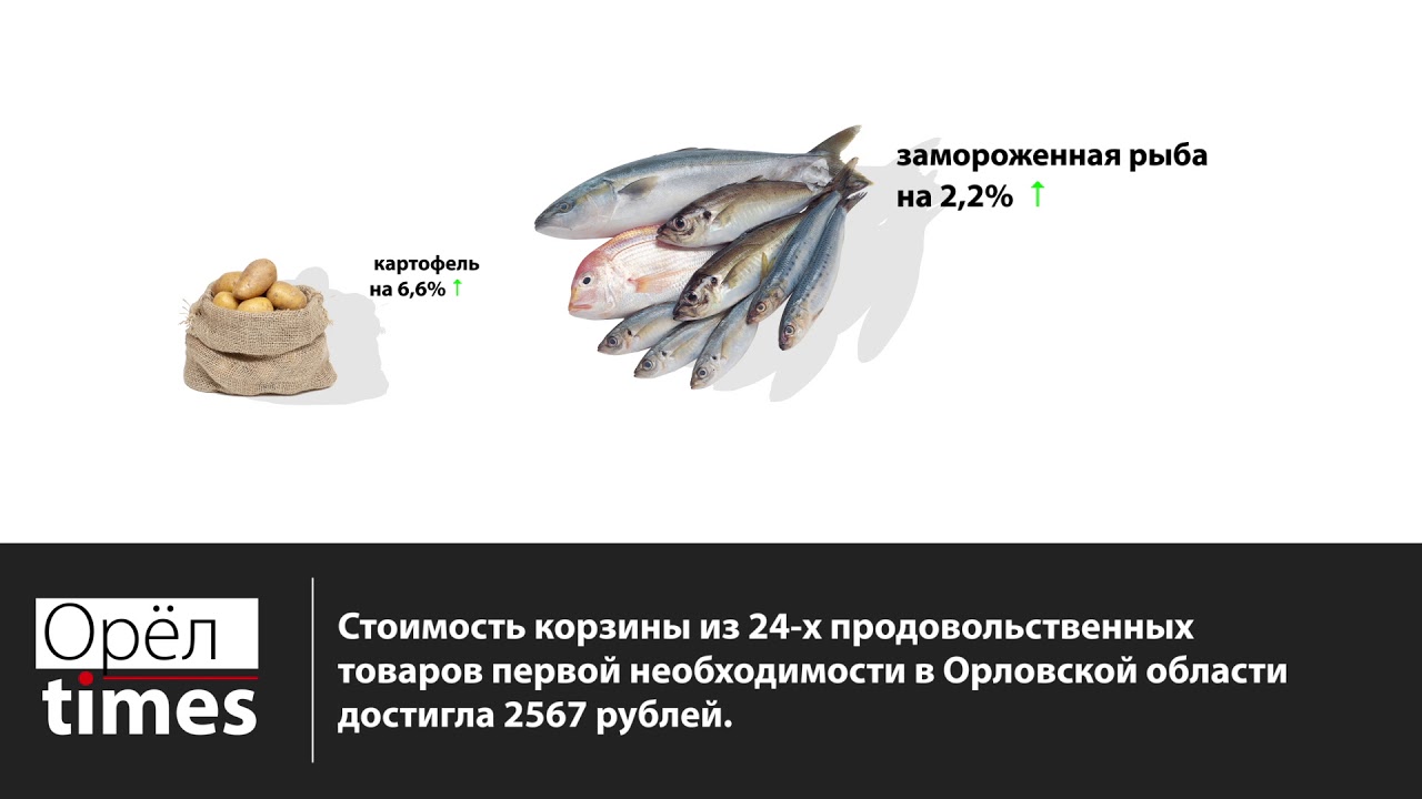 Стоимость корзины из 24-х продовольственных товаров первой необходимости в Орловской области достигла 2567 рублей. По сравнению с прошлым месяцем продуктовый набор подорожал на 0,6%. О подорожании сообщил руководитель департамента промышленности и торговли Геннадий Парахин на заседании регионального правительства. Цены выросли на пшеничную муку – на 2%, замороженную рыбу – на 2,2%, на хлеб ...