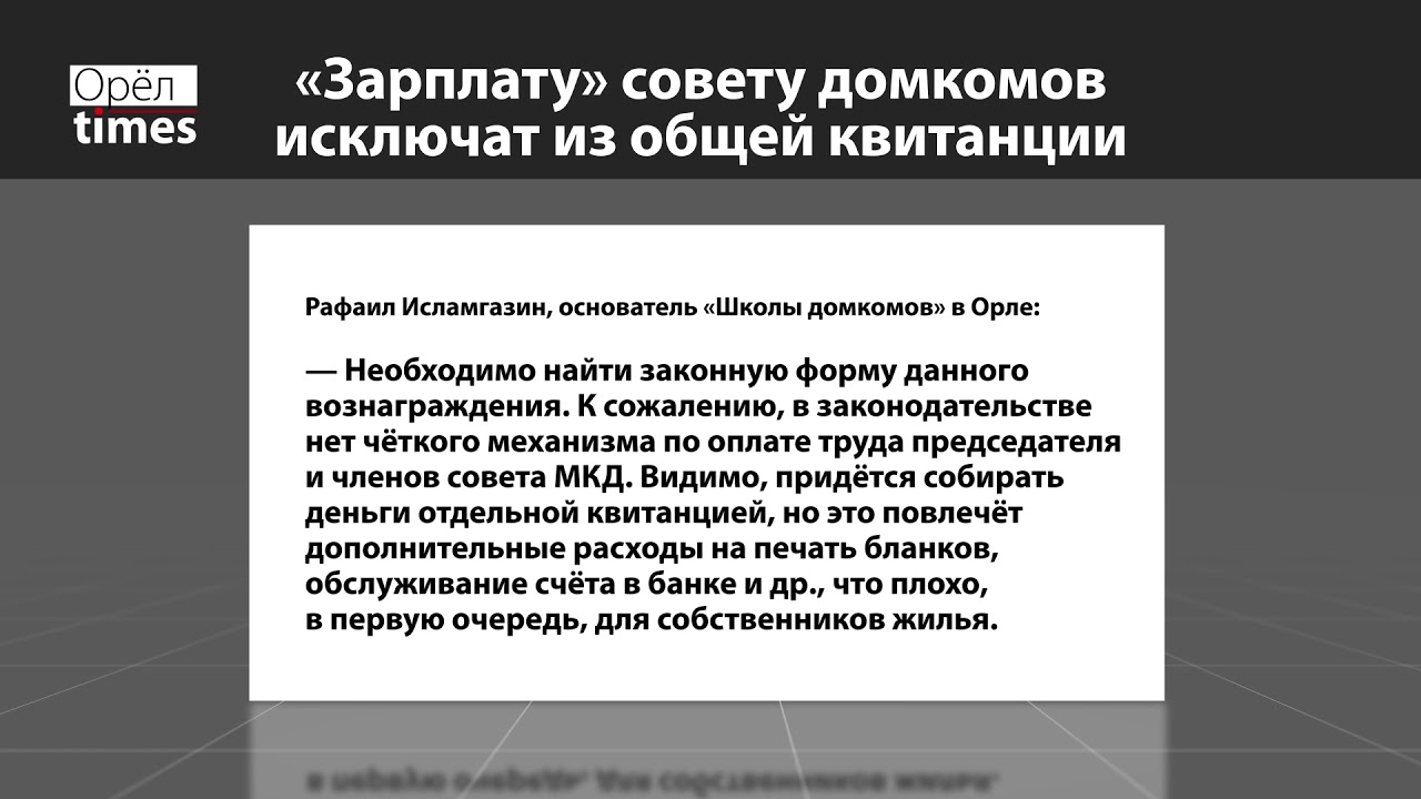 Судебная коллегия по гражданским делам Орловского облсуда установила, что строчка о вознаграждении совету многоквартирных домов (МКД) в квитанции за коммунальные услуги незаконна. В платёжках ООО «Домовой комитет» с января 2017 года вписывалось вознаграждение председателю и членам совета МКД. Жилищный кодекс РФ (часть 8.1 ст. 161.1) разрешает такого рода выплаты, однако «зарплата» не входит в ...