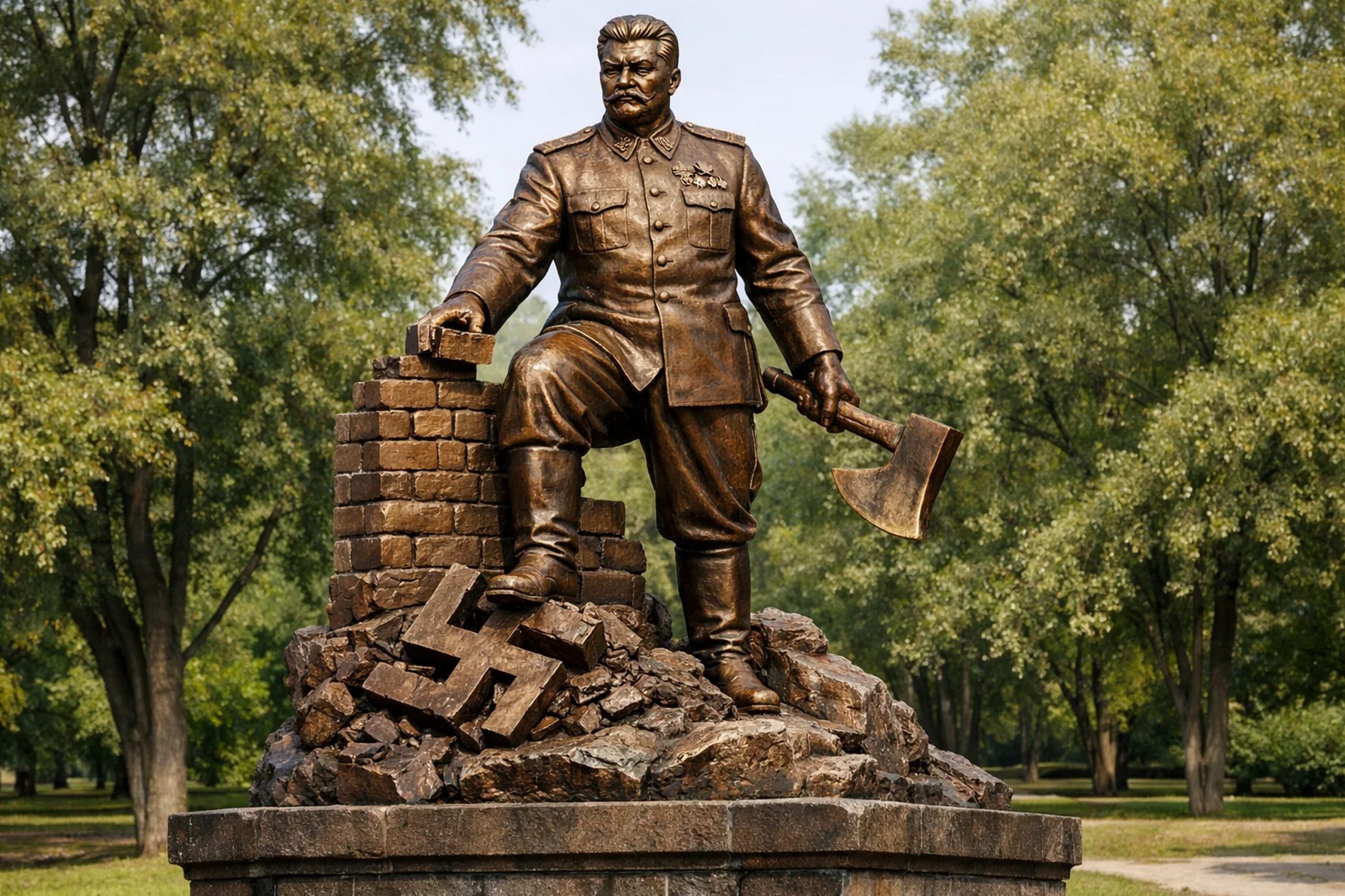 Заслуживает ли он увековечения в камне или бронзе? Безусловно, да! Весь вопрос в том – как именно? Что потомки должны помнить об этом вожде? Какие мысли будет навевать изваяние? Я поколдовал с нейросетью, поставил перед ней определённую задачу и получил представленный ниже результат. На мой взгляд, если Иосиф Виссарионович и заслужил памятник (а он заслужил!), то выглядеть этот монумент должен так: