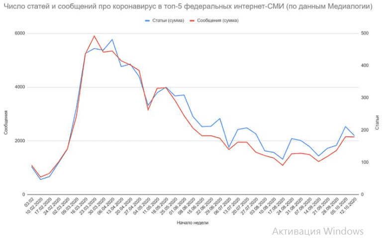 Вторая волна эпидемии провоцирует и новый всплеск интереса в СМИ — может быть, просто поэтому запросов, связанных с коронавирусом, становится больше? «Нет», — утверждает Драган. И это не накрутка, не медиашум и не массовый психоз. По мнению автора, именно так выглядит вторая волна эпидемии, которая одновременно накрыла большую часть страны. Драган утверждает, что «пропало обоняние» — запрос не медийный. Поскольку его популярность не зависит от активности СМИ. «Он растёт непрерывно на протяжении 2 месяцев — тогда как медийные запросы дают разовый пик, который за одну-две недели спадает», — сказано в исследовании.