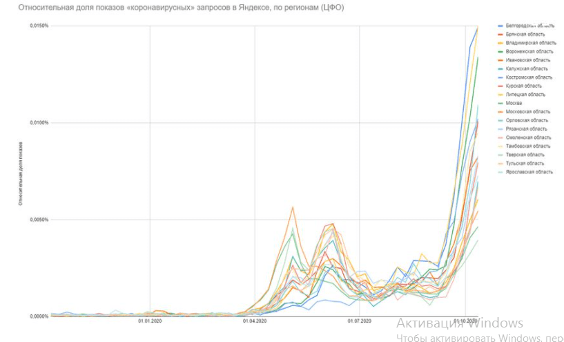 По его мнению, именно поисковые системы наиболее ярко отражают реальную картину с распространением новой коронавирусной инфекции по регионам – получше любого статистического ведомства. И дело здесь далеко не в панике, сезонных простудах или ажиотаже в СМИ. Всем, кому интересны доказательства и свидетельства данных утверждений, с ними можно ознакомиться в первоисточнике. «Орелтаймс» обобщил и максимально сократил данные, выделив для читателей наиболее острые и интересные моменты.