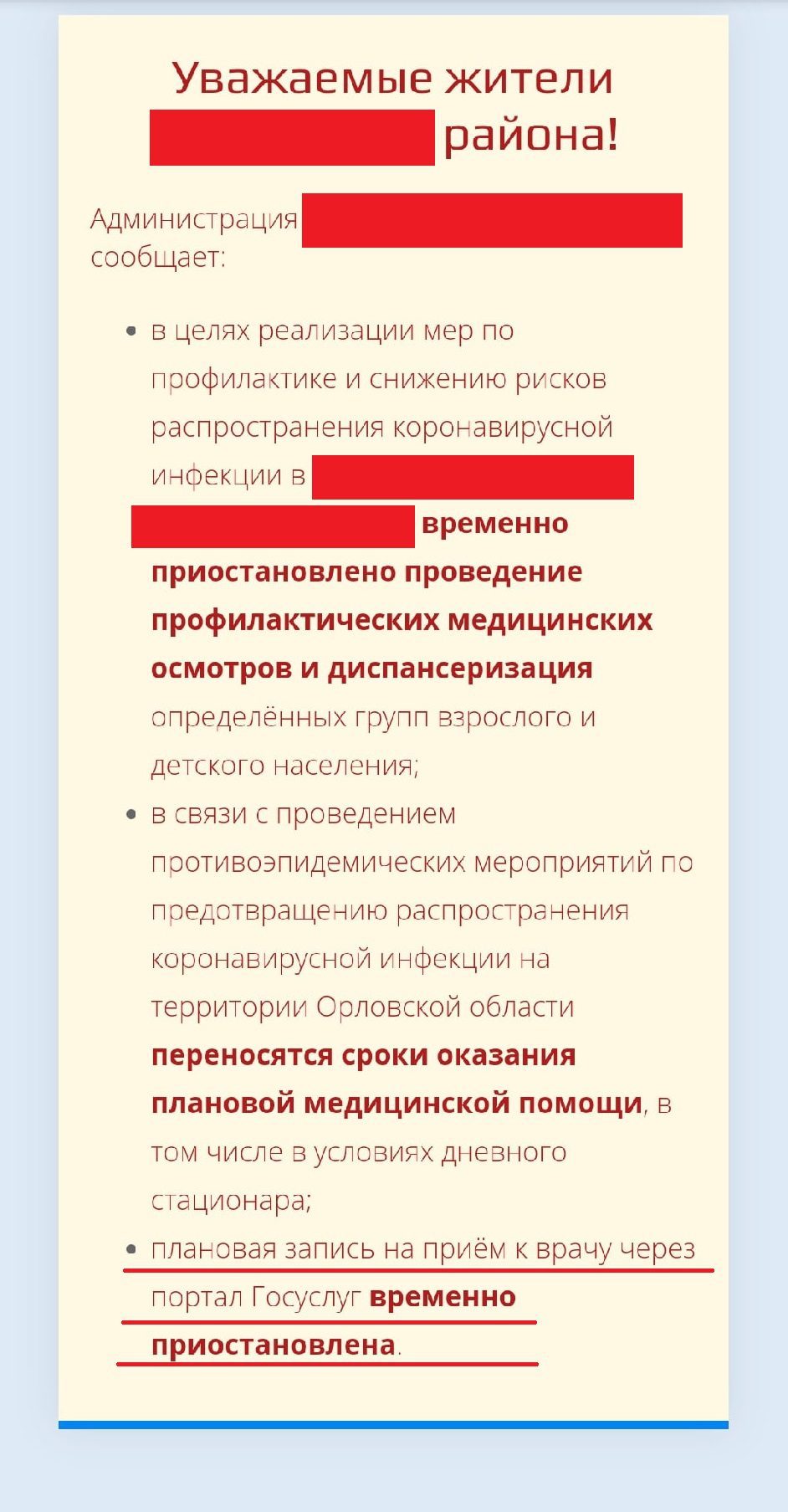 Пока женщина вызывала по фамилиям счастливчиков, зашёл на портал поликлиники и увидел, что электронная запись временно приостановлена.