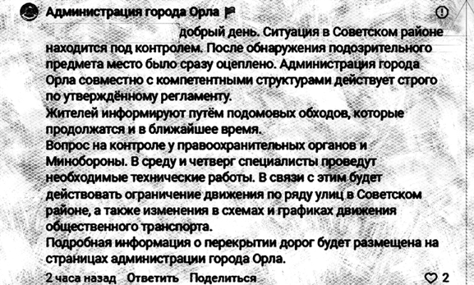 Движение транспорта в Орле изменят на два дня для изъятия боеприпаса ВСУ