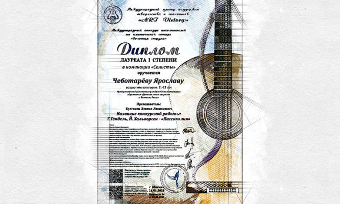 Учащийся второго класса отделения «Народные инструменты» по классу «гитара» Болховской школы искусств Ярослав Чеботарёв стал победителем Международного конкурса исполнителей на классической ...
